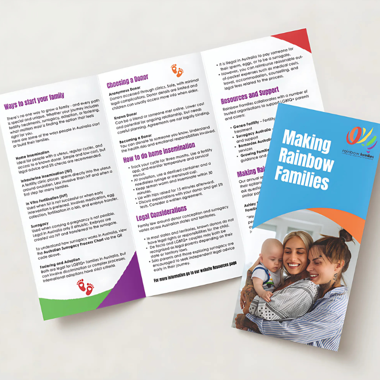 This resource was originally developed by developed by Rainbow Families Qld to assist the LGBTQ+ community to understand their options in starting a rainbow family.