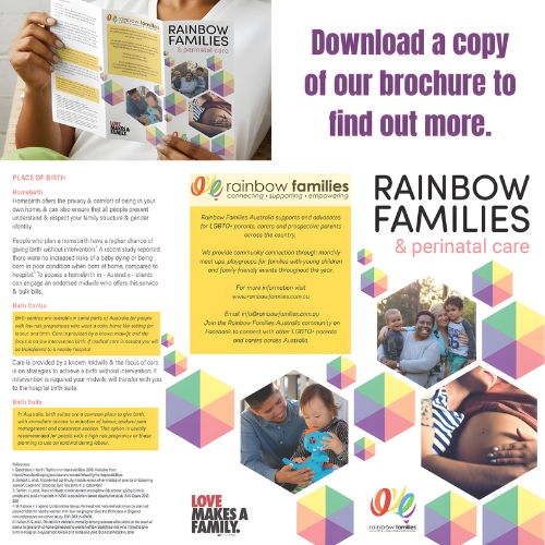 If you are exploring birth options, our perinatal care brochure is a helpful starting point. It explains the difference between birth centres and hospital birth suites in clear, simple language and outlines what kind of care midwives provide during pregnancy and birth. This resource supports LGBTQ+ parents and carers to feel informed and confident when making decisions about their birth plan. Download it to learn more about midwife led care in Australia or share with your networks.