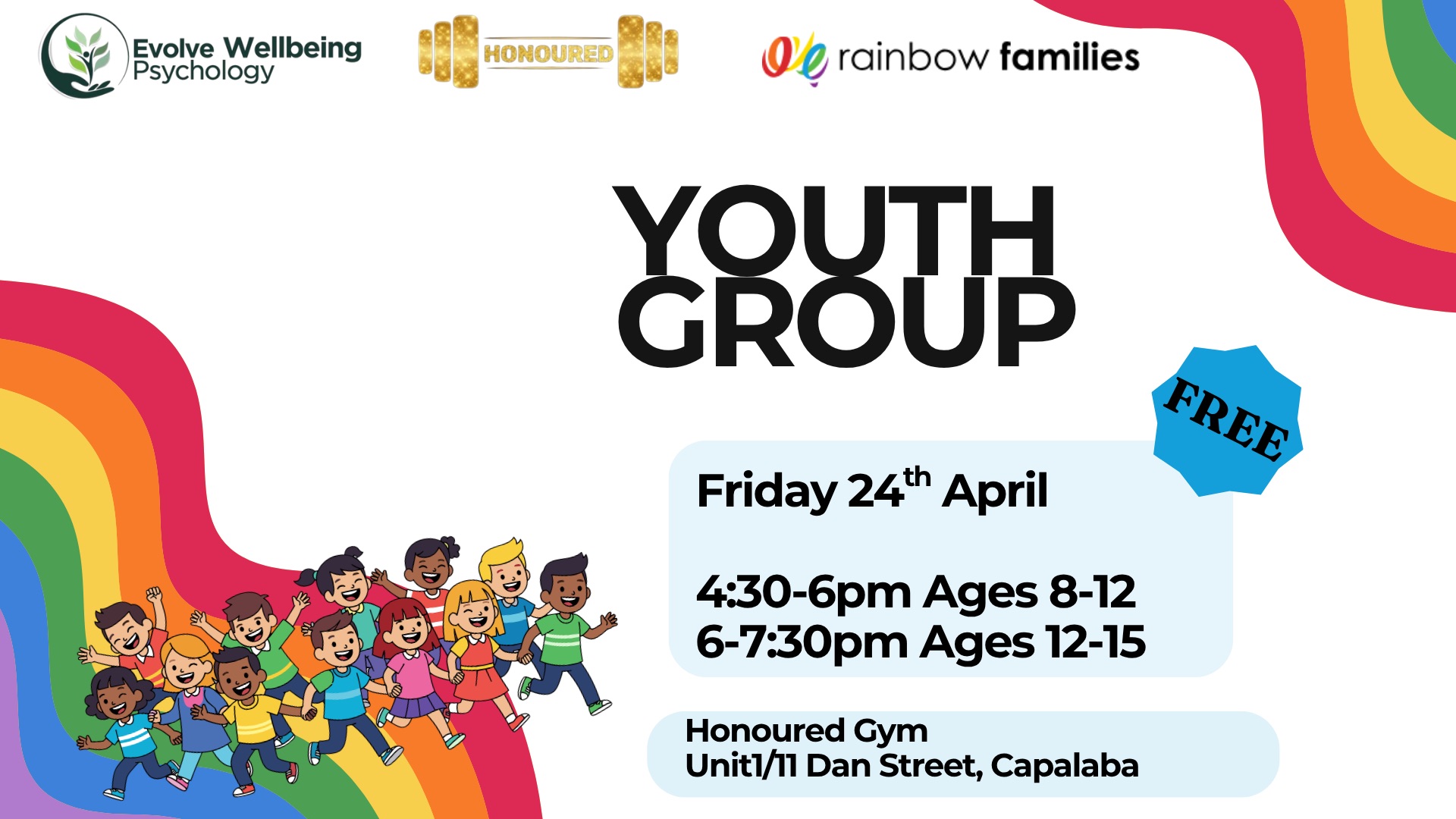 This is a beautiful new collaboration between Rainbow Families, Honoured Social Enterprise Gym and Evolve Wellbeing Psychology, created to give young people a safe, supportive space to connect, move their bodies and just be themselves.