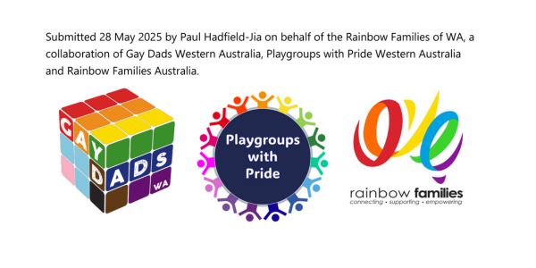 Submitted on 28 May 2025 by Paul Hadfield-Jia on behalf of Rainbow Families of WA, a collaboration of Gay Dads Western Australia, Playgroups with Pride Western Australia, and Rainbow Families Australia.
